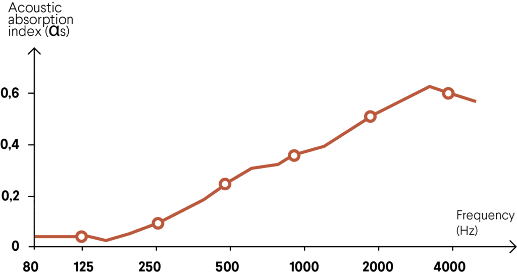 Sound absorption    Natural sound absorption, depending on thickness and shape. Certified lab-tested Class: D (NRC 0.4)