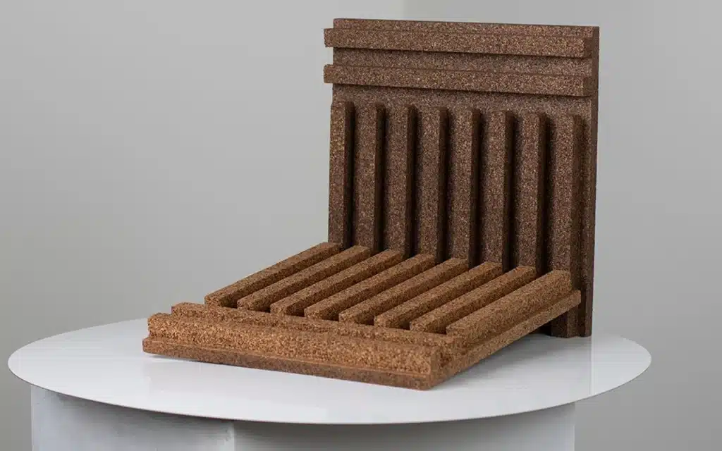 Elevate your interiors with sculptural cork walls that blend architectural rhythm, natural texture and certified acoustic comfort – all in a sustainable and customizable format.
