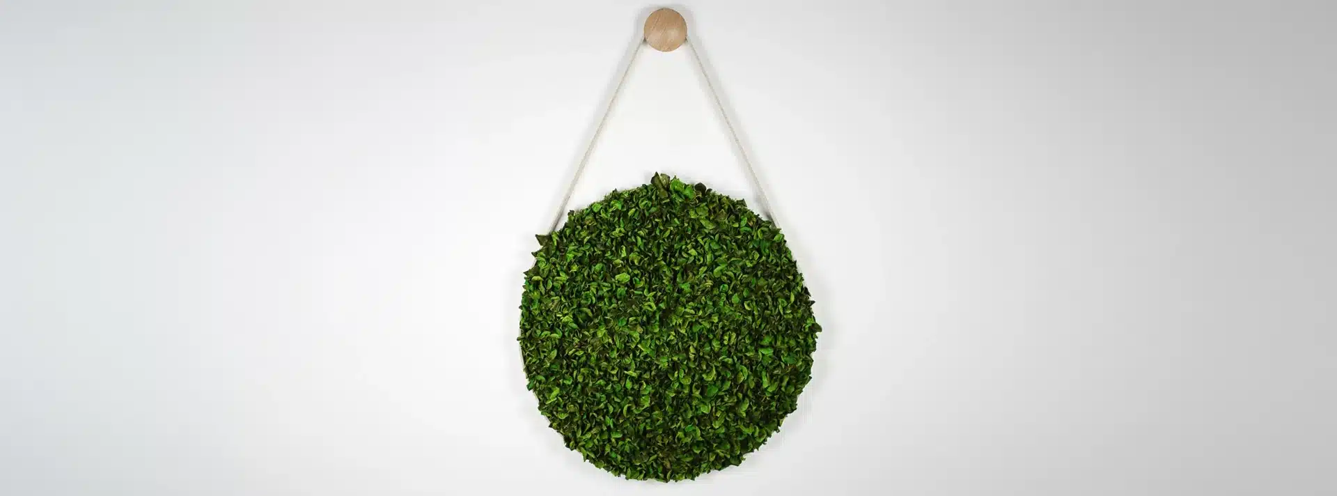 Each Belt unit is made with a combination of natural wool felt, biodegradable moss or foliage, and long-lasting materials designed for low-impact interiors. Crafted by hand in Europe, the discs require no water, light or upkeep, and contribute to a healthier planet through sustainable sourcing and eco-conscious design.