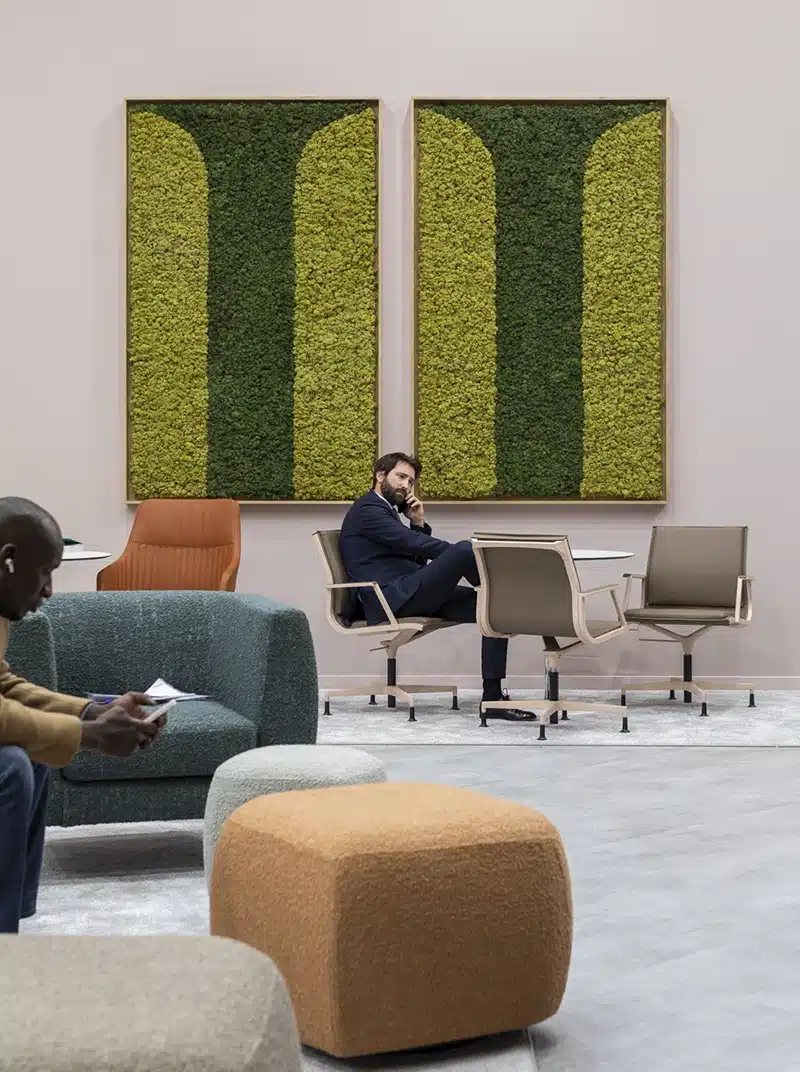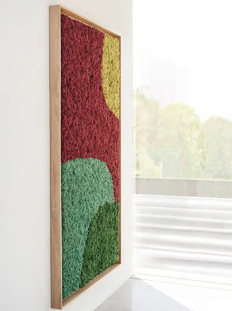 Like all Greenmood designs, Framed contributes to acoustic well-being. The preserved moss naturally absorbs sound waves, helping to reduce reverberation and soften ambient noise in busy environments.