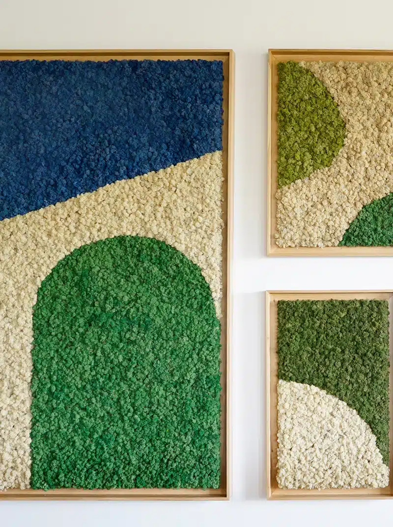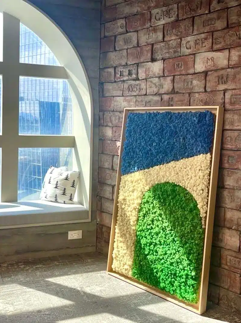 Choose the size, design style, frame finish and moss color to create a piece that fits your space perfectly.