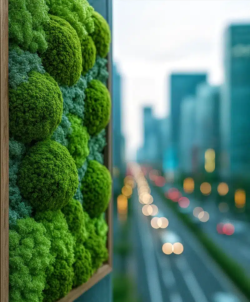 Greenmood’s biophilic design solutions are crafted with 100% natural, preserved moss and plants.