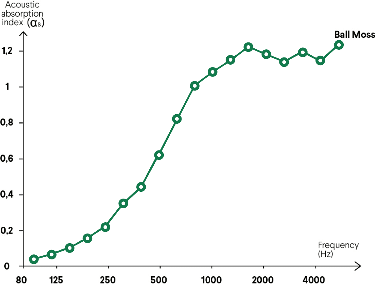 Our preserved Ball Moss was tested according to ISO 11654:1997 by a certified Belgian laboratory.