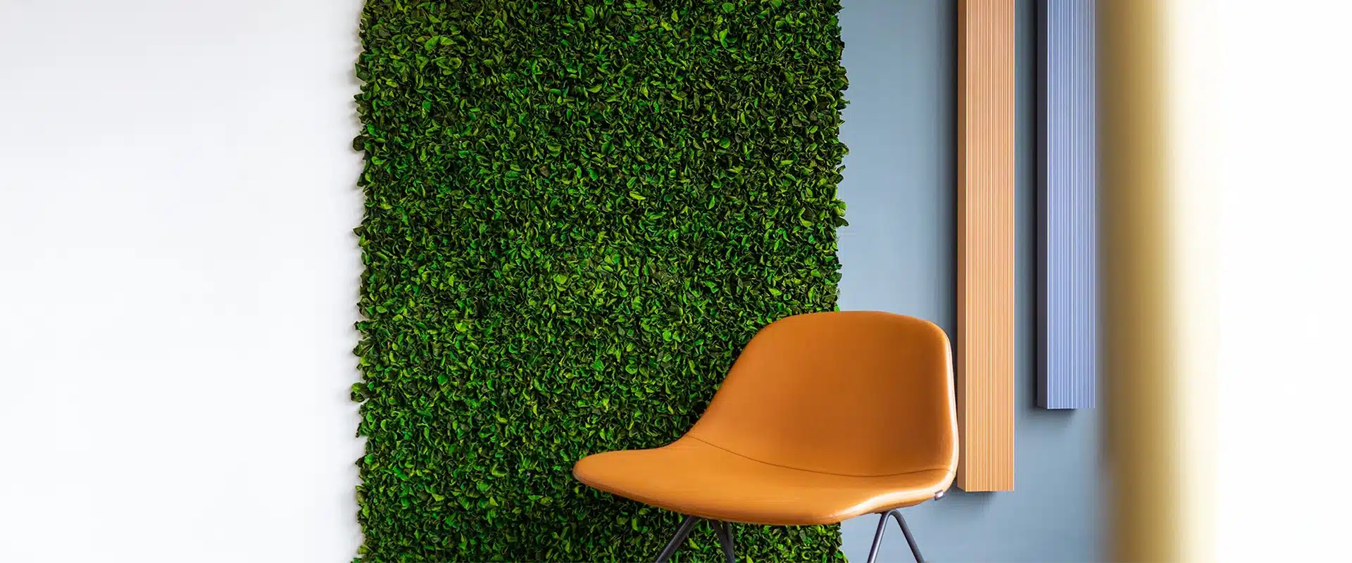 Each Velvet Leaf wall is a handmade composition, rich in texture and character. The foliage forms a layered, organic surface that reduces ambient noise while creating a calming atmosphere.